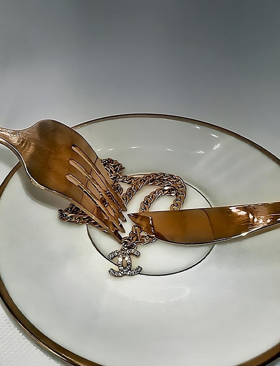 Step into pure luxury with our awesome golden gleam Chanel necklace repurposed from Chanel sunglasses. Get ready to stand out and stay eco-cool with this unique piece that’s all about killer style and saving the planet. Wait a minute, saving the planet and your bank account! 🙂